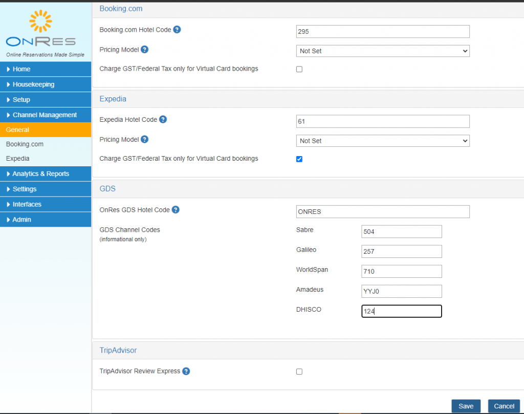 Once you click on the ‘Channel Management‘ module in the OnRes extranet, you will come across this window:
